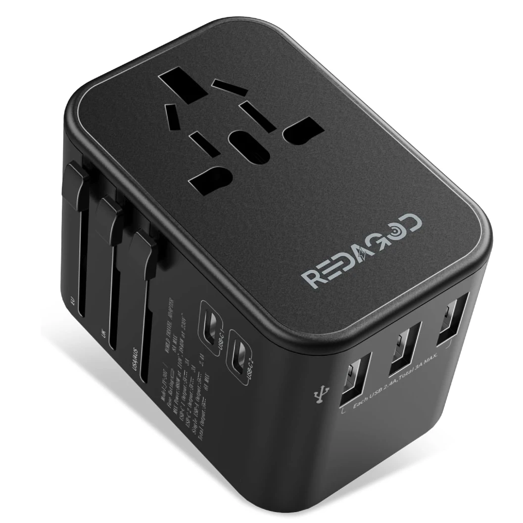 Imprescindible para viajes largos y para la vida nómada en general, adaptador 6 en 1 con accesos laterales por USB.