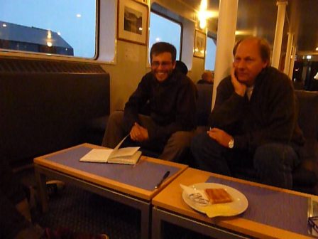 Es en el auto de Anita y Nicolás como llegamos al puerto. Después de despedirnos de los chicos cargamos nuestras mochilas hasta la aduana, donde cordialmente nos invitan a reposarlas sobre la cinta de la máquina de rayos X. Tras ese espionaje legal, una empleada de aduanas nos señala un carrito para trasladar nuestras mochilas por el muelle, a lo que ambos amable pero decididamente nos negamos explicando que si habíamos llegado desde San Nicolás hasta Ushuaia a dedo, bien podíamos pecharlas hasta el buque. La mujer piensa que es un chiste y ríe. ¿Cómo dos personas que viajan a dedo pueden estar abordando el “Ushuaia”? Como si el prolongado muelle fuera una pasarela desenrollada hacia nuestro sueño, cubrimos los cien metros que nos separan del barco con las mochilas debidamente calzadas, con lentos pasos que nos permiten disfrutar el momento y una sonrisa que no podríamos describirles. Subimos la escalinata, donde dos camareros toman nuestras mochilas – con torpeza, intentando asirlas como si fueran maletas- y nos conducen hacia nuestra cabina, para los adeptos a la quinela, la 410… Dejamos a La Maga y El Salmón –nuestras Mochis- en el armario y echamos un vistazo a la funcional cabina alfombrada, con sus cuchetas, el baño privado, un ojo de buey y, fundamental, un escritorio. Por el intercomunicador, el líder de la expedición nos invita a un cóctel de bienvenida. En eso que salimos al pasillo, nos encontramos con que de la cabina de al lado emerge Federico Gargiulo, amigo y autor de “Huellas de Fuego” (si les gustan los libros de viaje harán bien en rastrear un ejemplar) un periplo a pie alrededor de la Península Mitre. Nos dimos un fuerte abrazo celebrando la coincidencia. Nosotros sabíamos que Fede había ganado un concurso literario referido al Bicentenario y que por ello abordaría el Ushuaia el 13/11. Lo que no sabíamos era que nosotros lo haríamos, y que nos tocaría el mismo barco. Del camarote de Fede sale otro rostro lustrado por la dicha que a todos nos posee, es Pablo, curador del Museo Naval de Tigre, ganador del mismo concurso en el rubro pintura. De esta manera, fundamos el gentilicio “arribeños” que pasamos a investir con orgullo de linaje y que designa, en criollo, a quienes estamos circunstancialmente en el barco… de arriba. Claro que hay a ganar un concurso o escribir un libro encierra un mérito, pero no importa, la sensación es la de haber sacado la sortija. Más allá del humor con que trato el tema, es importante mencionar que la empresa Antarpply, no teniendo ningúna obligación de hacerlo, decide por iniciativa propia fomentar y motivar diversas actividades culturales al ofrecer expediciones antárticas como premio.