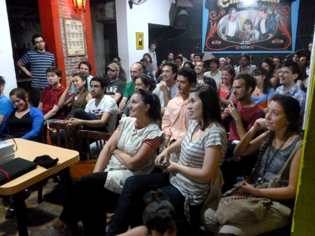 Ahí estuvimos confundiendo a la gente con ideas peligrosas, como leer libros y viajar, en todo caso, sólo incitándolos a escuchar su propia vocecita interior que pide salir a los caminos. Fue un gusto conocer en persona a lectores rosarinos que no se perdían un post del blog desde su inicio, y que me tomaron examen preguntándome detalles de las primeras crónicas. Me obligaron a hacer memoria, pero entre cervezas todo es perdonable.