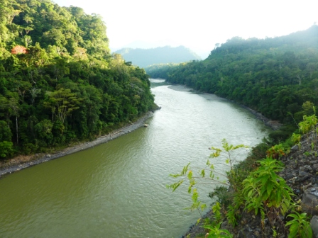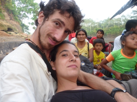 La ruta hasta Puerto Kaspaim es excelente. Mientras viajamos en la doble cabina de un ingeniero me pregunto si acaso no será el asfalto el que gestione la dominación que incas y españoles fallaron en infligirle a los Shuar. Los Suar que viven sobre la carretera, ya están vendiendo sus tierras –y les pagan por árbol en pie- a madereras. Con el dinero compran “carros del año”, como llaman en Ecuador a los 0 km. Para algunos, esto equivale a progresar. Nosotros, en cambio, estamos interesados en conocer a los otros Shuar, a los que aún viven en armonía con la naturaleza en comunidades al margen de sus ríos. Nos sentamos tímidamente en las gradas del embarcadero. Algunos nos preguntan a dónde vamos, y a todos respondemos que vamos a visitar a nuestro amigo Pascual. Tememos que nos pidan un permiso extendido por la Federación Shuar, papel que deberíamos tener para aventurarnos río adentro.