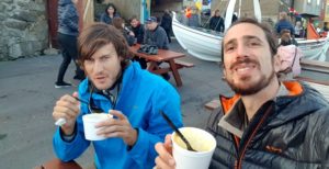 La mujer se llama Silvia y pronto hierve agua. Pronto Matías, ella y yo conversamos en el porche de su casa: Misión rompehielos de la tacita, ¡cumplida! Silvia nos cuenta que creció en Gasadalur, pero vive en Dinamarca (a donde emigra buena parte de los jóvenes para seguir estudios universitarios). Vuelve tan pronto como puede – dice, porque la agobian las masas de Copenhague. En verano, cuando la mayoría de sus compatriotas vuela a destinos cálidos como Grecia o España, ella lo hace de forma inversa, hacia el frío umbilical de su aldea-cuna, y se queda allí todo el verano.