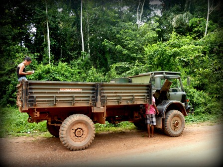 Ahora podía recordar todo con mas claridad. Habíamos entrado al país desde Boa Vista, en Brasil, y viajado por la Sabana de Rupununi con buscadores de oro colombianos que andaban sin pasaporte pero con una palangana de cazafortunas para aventurarse en ríos infestados de malaria. Habíamos luego cruzado la selva amazónica en un camión Bedford de los años 70 que las ramas de la jungla hacian sonar como un xilofón oxidado.