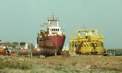 Y antes de salir, visitamos a la gente de la Secretaría de Turismo. Queríamos pedir algún folleto, pero nos escucharon en la radio, y es el mismo secretario el que nos sube a su vehículo particular y nos lleva a recorrer la ría, donde fotografiamos cormoranes que anidaban en los riscos mientras el viento insistía en levantarnos como barriletes. Quizás el viento, tan presente en esta semana de viaje, también quiera decirnos algo. Todo este tiempo, veníamos viajando con cierta prisa, con la secreta esperanza de poder llegar al Laicrimpo (Encuentro de Salud Popular) de Formosa el 9 de noviembre. Desde Puerto Deseado en adelante, nos dejamos llevar, por el viento, por los camiones… volvemos a apropiarnos del tiempo. Allí donde no esperábamos nada, lejos de nuestro ilusorio itinerario –y del de la mayoría de los viajeros- fuimos recibidos como reyes y alentados a quedarnos. Un constructor –Aníbal- terminó coordinando un encuentro educativo y un secretario de turismo haciendo visitas guiadas en su propio coche. Más que haber visitado el pueblo, sentimos que el pueblo nos visitó a nosotros, nos abdujo de la Ruta 3 y nos “secuestró” a fuerza de atenciones. Quizás haya incluso una moraleja cifrada en su nombre. Puerto Deseado, dice el mapa. Después de nuestra visita, confirmamos que los mejores hallazgos no son los que andábamos “deseadno”, mapa del tesoro en mano con la “x” 50 pasos al norte, sino los que evaden los limitados marcos de nuestros itinerarios y deseos. Puerto no deseado, tesoro hallado. El tao y la mar en coche.