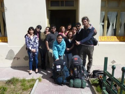 Aún con las mochilas en la caja, bajamos de un salto a una radio donde ya nos esperaban. Aún no hemos visto nada del pueblo, pero ya nos estamos presentando, confesando al aire los kilómetros recorridos y alguna que otra anécdota. En la radio nos atienden con entusiasmo, y coordinan para que la noticia salga también en el diario local. De allí otra vez a la camioneta de Aníbal. Esta vez vamos a la casa de Pamela, una joven empleada municipal oriunda de Orán, Salta. Que una chica de Orán sea empleada municipal en Puerto Deseado refleja perfectamente el fenómeno de migración interna de nuestro país. Pamela había intentado conseguirnos el albergue municipal, pero como este estaba ocupado por los participantes de un campeonato de gimnasia artística ¡nos deja su propio departamento! Es una sección de una tradicional vivienda “magallánica”, de exteriores de chapa y techo a dos aguas, aunque reciclada en el interior.