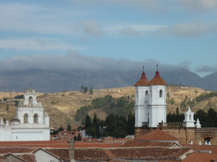 Observando Sucre desde la colina del barrio de la Recoleta o desde cualquiera de los campanarios de la ciudad uno es víctima y cómplice de una ilusión óptica, parece que el tiempo se hubiera detenido en aquella época. En la Catedral comenzamos nuestro recorrido histórico. Data de 1559 y ostenta un estilo barroco perturbado por adiciones neoclásicas. Muchos la conocen por la torre de su reloj. Quedará sin embargo en mi memoria por alojar una infamia: la Virgen de Guadalupe. Uno se encuentra con ella tras recorrer las vitrinas del Museo de la Catedral, repleto de casullas, atriles, tinteros y misales de plata. Fue originalmente pintada por Fray Diego de Ocaña en 1601, y era una simple pintura más hasta que las familias nobles de Sucre comenzaron a donar diamantes, esmeraldas, rubíes y perlas que iban siendo colgadas de la tela. Como esta comenzaba a ajarse, el obispo de Sucre propuso enchapar la pintura en plata y oro. El resultado es la Virgen más rica de América, y una muestra cabal y sincera de la moral de la época: lo susceptible de adoración eran los diamantes y las gemas, el oro y la plata, y no la Virgen que acabó siendo tapizada, obliterada por estos metales. Más que una obra artística es una confesión de las intenciones españolas en el continente. En cada sentido funciona como paralelismo, ya que la incrustación de joyas en una imagen religiosa no deja de ilustrar que la legitimación de la explotación tenía un anclaje religioso.